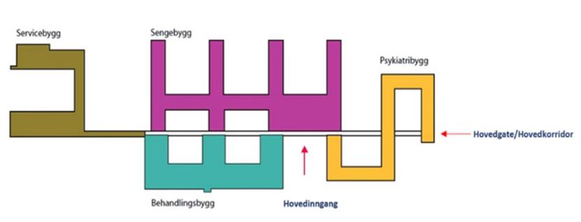 Nytt østfoldsykehus, Kalnes, generell funksjonsoppdeling og utforming av bygget. Forprosjekt 15.11.2010Kilde: Illustrasjon: Arkitektgruppen nytt østfoldsykehus/Cowi