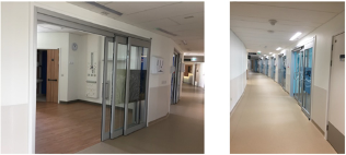 Bad er lagt mot ytre fasade. Det er god visuell kontakt fra korridor til sengerom og omvendt. Dørene kan åpnes slik at hele døråpningen blir fri for inntransport av tungt utstyr, seng med utstyr o.l.