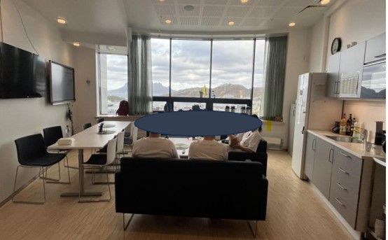 Pauserom NLSH Bodø. Lokalisert mellom A og B fløya