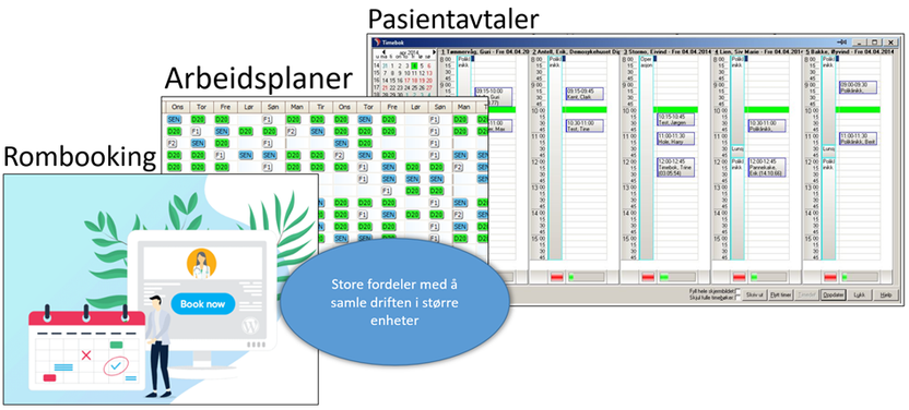 • For små sykehus/mindre fagområder kan det være mest effektivt å ha en timebok med både oppmøtepasienter og digitale konsultasjoner.