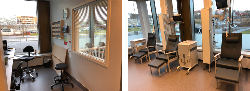 Evalueringer viser, at i poliklinikkområder hvor pasientene tilbys beroligende medikamenter er det nødvendig med tilgang til observasjonsplasser.