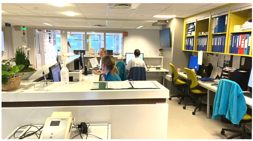 Arbeidsrom i tilknytning spesialrom, gir bedre arbeidsflyt og effektivitet. Her kan lege informere pasienten mens sykepleier gjør klar for ny pasient.