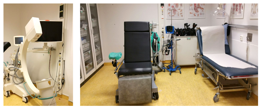 - Hvilerom eller observasjonsplass hvor pasientene kan moniteres etter prosedyren.