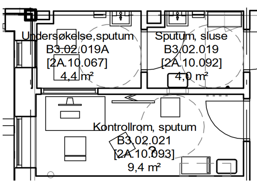 Sluttkontroll/verifisering: Sputumrommet må funksjonstestes som en helhet for å verifisere at alle forutsetninger fra risikoanalysen og grunnlagsdokumentet fungerer som tiltenkt. Metode for verifisering av sputumrom er beskrevet i Sykehusbygg HF sin prosess for spesialrom.