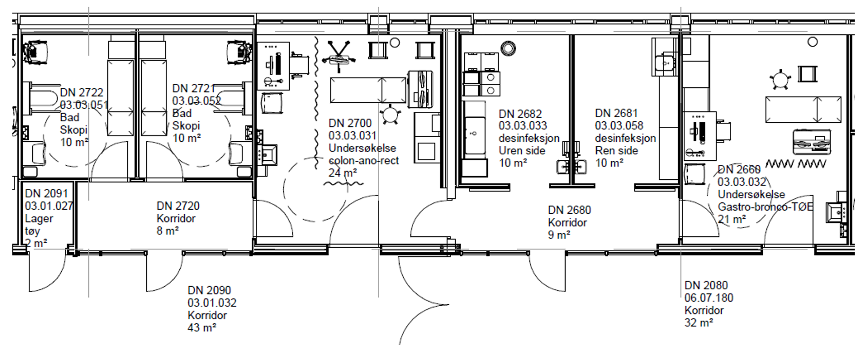 - Adkomst og gangavstander opp mot desinfeksjonsrom, rene endoskop, avdelingslager og andre støtterom.