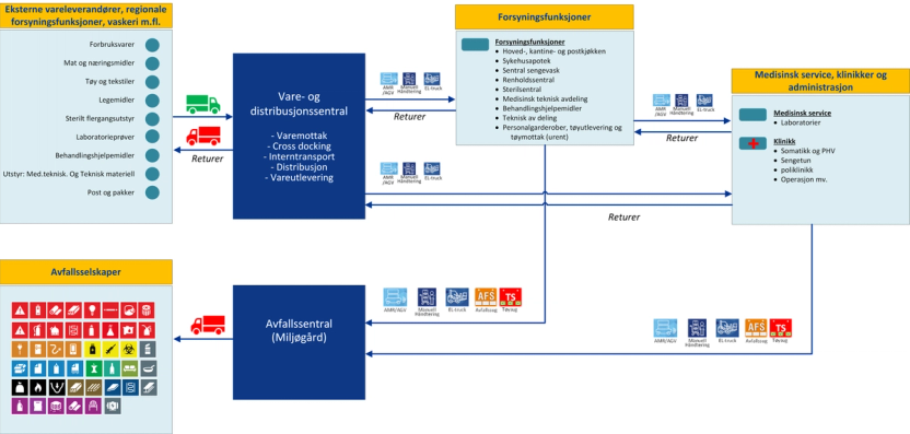 Inn- og utgående vareflyt til sykehus med vare- og distribusjonssentralKilde: Sykehusbygg HF