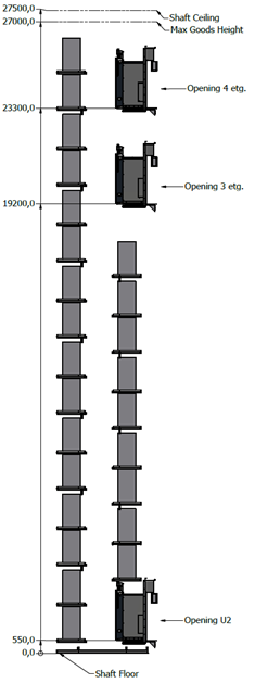 Investeringskostnad, kapasitet og lønnsomhet avhenger av høyde på sengelagerheisen som igjen er avhengig av høyde på bygget og antall plan som skal ha tilgang for betjening. Se konseptuell skisse i figuren nedenfor (se også Sengelagerheis under Forsyningsteknologier). I dialogen med leverandør kan man simulere lønnsomhet med sengelagerheis vs. ordinær lagring av senger i sengesentraler, og som tar hensyn til transport av senger.