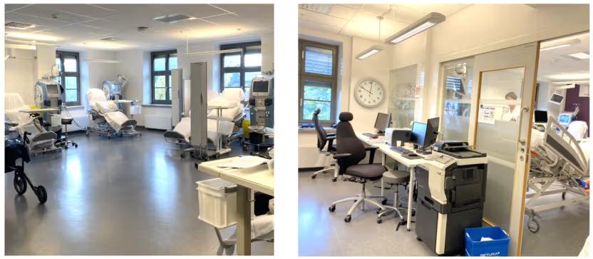 Dagplass med hvilemulighet for pasient før, under og etter dialyse. Pasient er tilkoblet en dialysemaskin i 3 - 6 timer.