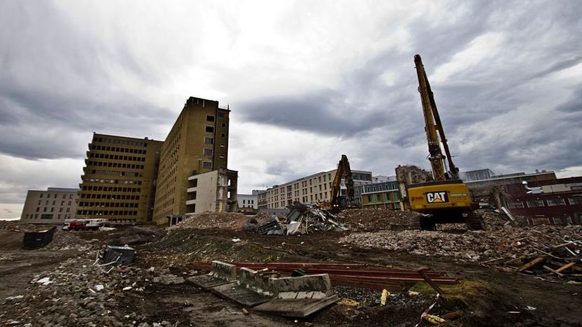 Riving av den gamle høyblokka St.Olavs hospitalKilde: Foto: Sykehusbygg HF