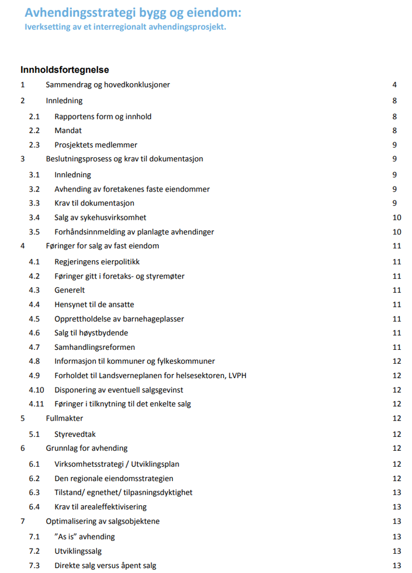 Innholdsfortegnelse Rapport ”Iverksetting av et interregionalt avhendingsprosjekt”