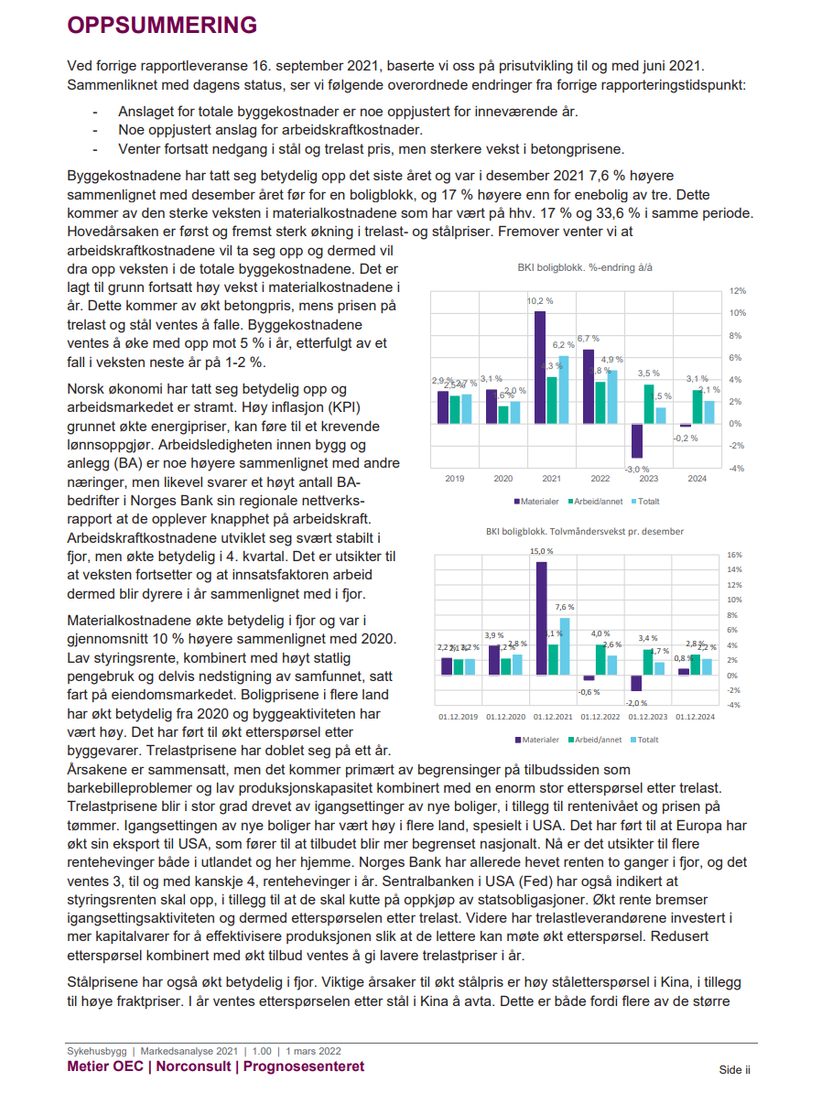 I billedserie vises oppsummering fra rapporten "Markedsanalyse for prisutvikling av byggekostnader"