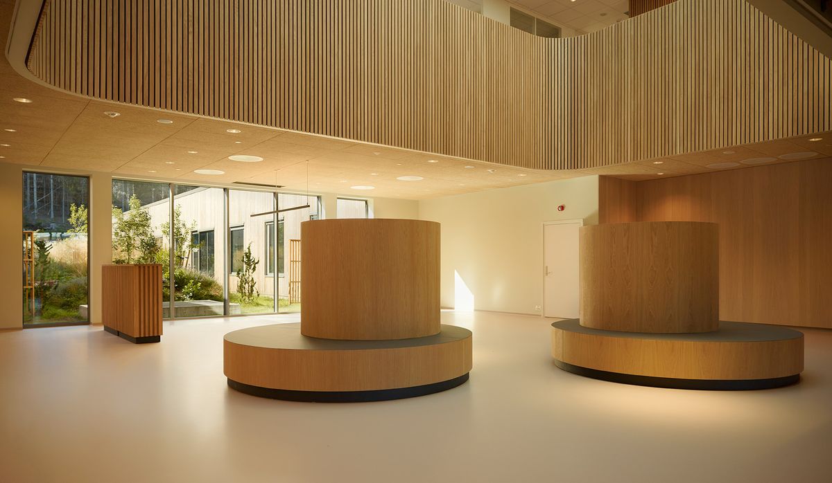 - Lange, brede korridorer (omtrent 3 m) som reduserer trengsel og gir god bevegelsesflyt.