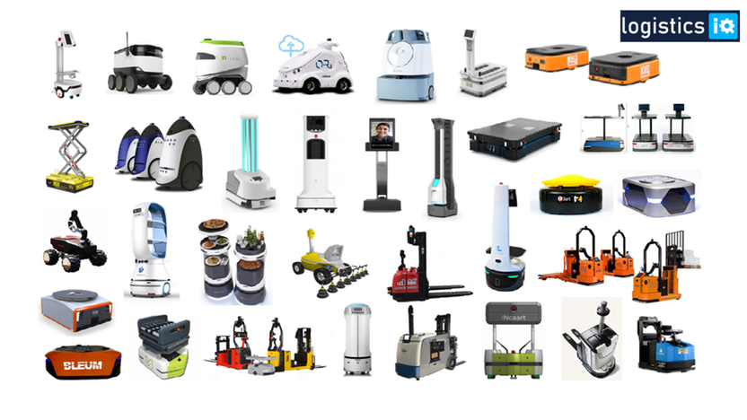 I figuren nedenfor er det eksempler på forskjellige typer AMR’er. Det finnes en rekke forskjellige produsenter og leverandører i det globale markedet. Trenden er at andelen AMR’er øker på bekostning av AGV’er. Det forventes en ytterligere økning i markedet for AMR.